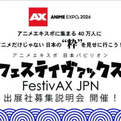 - 2025/12/17 アニメエキスポ(Anime Expo)2026 日本パビリオン 「フェスティヴァックス ジャパン (FestivAX JPN)」 協賛社・出展社募集のオンライン説明会を 12月19日に開催します!