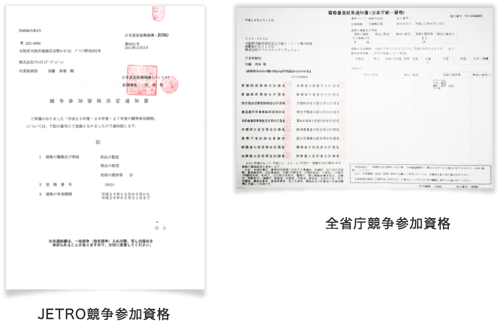 特長03豊富な経験・実績とJETRO競争参加者資格、全省庁共通の競争参加資格 を保有しています。