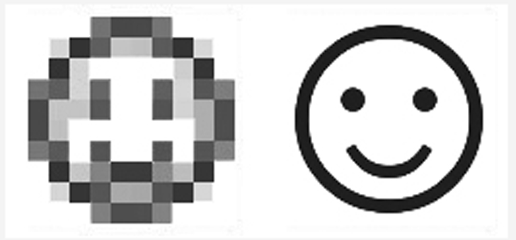 四角い点・点であるピクセルが見える程度にまで大きくすると